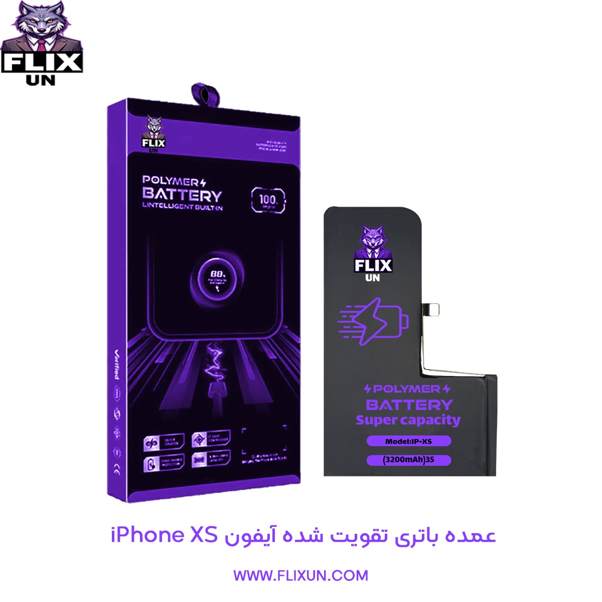 باتری تقویت شده گوشی آیفون iPhone XS  برای حل مشکلات کاهش کیفیت و عمر باتری آیفون توسط فلیکسون به تولید رسید. گوشی آیفون XS در سال 2018 توسط برند اپل طراحی شده و به علت داشتن ویژگی‎هایی مثل پشتیبانی از شارژ سریع 18W (شارژر جداگانه)، تراشه A12 Bionic با مصرف بهینه انرژی و امکان پخش ۱۴ ساعت پخش ویدیو فروش بالایی داشت. بااین‌حال، مثل تمام گوشی‌های کارکرده مکان کاهش عملکرد باتری آن بعد از چند سال وجود دارد. فلیکسون برای تقویت باتری و حل مشکلات آن باتری تقویتی مخصوصی برای گوشی‌های آیفون تولید کرده است.