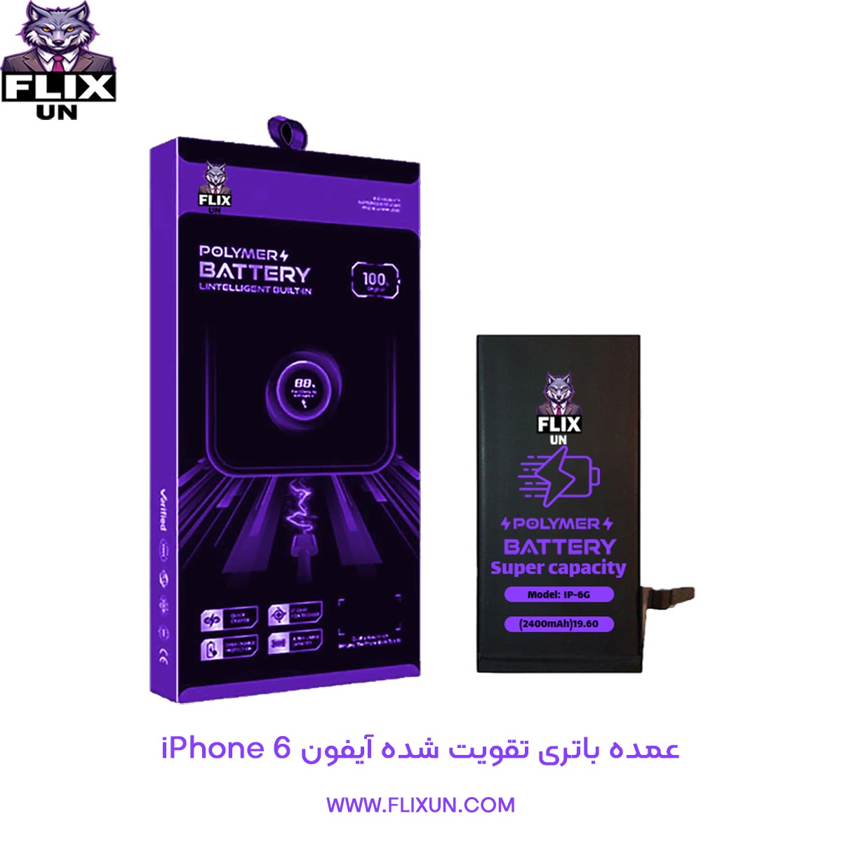 باتری تقویت شده گوشی آیفون iPhone 6 به منظور رفع مشکل رایج کاربران آیفون یعنی کاهش شارژدهی و افت عملکرد باتری توسط فلیکسون به تولید رسید. مدلهای قدیمی محصولات اپل مانند آیفون 6 با اینکه از یک سختافزار قوی و نمایشگر باکیفیت برخوردار بودند؛ اما به مرور زمان دچار نقضهایی شدهاند که بخش عمده آنها مربوط به کاهش کیفیت باتری این دستگاه است. اپل برای حفظ سلامت دستگاههای خود توان پردازنده مناسبی را با سلامت باتری تنظیم میکند. البته هر چقدر باتری به مرور زمان ضعیفتر شود، باعث کند کار کردن گوشی خواهد شد. عواملی مانند گرمای زیاد، شارژ مکرر، استفاده از دستگاه هنگام شارژ و گذر زمان در افت ظرفیت و بادکردگی سلولهای باتری نقش پررنگی دارند. بااینوجود، فلیکسون باتریهای تقویت شدهای ساخته است که با داشتن مقاومت بالا در برابر حرارت و طراحی دقیق میتواند عمر گوشی را افزایش دهند. درنتیجه، موبایل آیفون 6 کارکرده میتواند مانند روز اول پرقدرت کار کند.