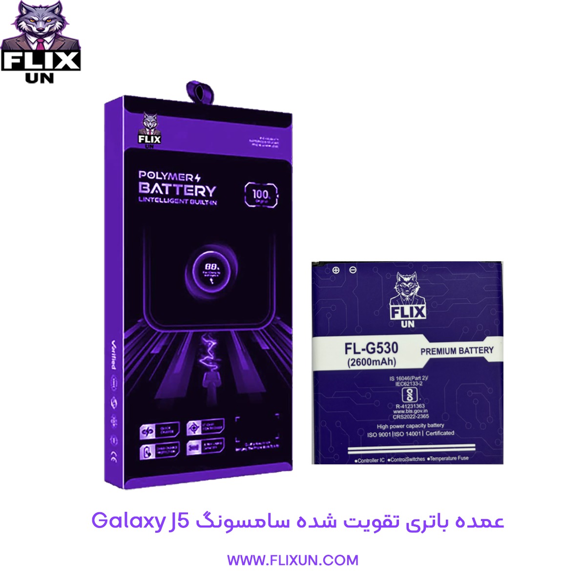 باتری تقویت شده گوشی سامسونگ Samsung Galaxy J5 مدل G530 یکی از محصولات فلیکسون است که برای تجربه کاربری روان و سریع در پی استفاده از گوشیهای قدیمی به تولید رسید. باتری G530 با داشتن ظرفیت نسبتا کافی در سالهای 2015 و 2016 در تولید بسیاری از گوشیهای سامسونگ مورد استفاده قرار گرفت. بااینحال، در پی گذشت چندین سال از تولید این مدلهای قدیمی، باتری آنها دچار نقصهایی مانند اختلال درنگه داری شارژ و خاموشی یکباره و بیدلیل شده است. برند فلیکسون به لطف تولید باتریهای تقویت شده توانسته عملکرد گوشیهای قدیمی را تا حد زیادی ارتقا دهد تا این مدلهای قدیمی هنوز هم برای تعداد زیادی از کاربران قابل استفاده و کاربردی باشد.