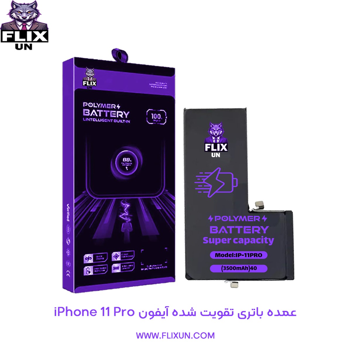 باتری تقویت شده گوشی آیفون iPhone 11 Pro بهمنظور رفع مشکل باتری گوشی کارکرده توسط فلیکسون به بازار عرضه شد. اپل با عرضه محصولات خود، هرساله طرفداران خود را مجذوب برند خود میکند. این گوشی، اولین مدل از سری نسل جدید گوشیهای آیفون است که توانست نظر بسیاری از آیفونپسندان را به خود جلب کند؛ زیرا با داشتن کیفیت فوق العاده هنگام عکاسی و فیلمبرداری توانست نسبت به سری قبل خود یعنی آیفون X بهتر عمل کند. بااینحال، در طی چندسال استفاده امکان پایین آمدن درصد سلامت باتری آن وجود دارد. کاهش این درصد در شارژ نگهداشتن و عملکرد صحیح گوشی تاثیر گذاشته و عمر آن را پایین میآورد؛ اما با استفاده از باتری تقویت شده میتوان مشکلاتی که مربوط به افت کیفیت باتری میشود را بهراحتی حل کرد. فلیکسون با تولید باتریهای تقویتی مناسب تمام مدلهای آیفون توانسته است عملکرد گوشی را بهبود بخشیده و طول عمر آن را افزایش دهد.